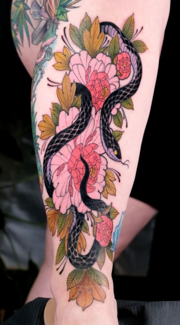 Boone is an award-winning tattoo artist hailing from Northeast Ohio. She specializes in Neotraditional/Traditional tattoo styles. She loves anything with heavy line weights, bold solid colors, and her signature "sticker effect. She’s tattooed all over the country from Portland, Oregon, to Kissimmee, Florida. Boone was also featured on Paramount Network’s INK MASTER Season 11. She fought her way to the top 5 in the hit reality TV show and became a force in not just tattooing, but LGBTQ+ representation and empowerment.